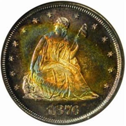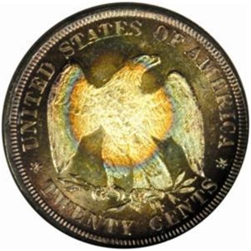 <style type="text/css"> body, td, th { font-family: Arial, Helvetica, sans-serif; font-size: 12px; color: #482424; margin: 0px; padding: 0px; } #header { background-image: url(http://www.bowersandmerena.com/ebay/images/template_v3_01.gif); clear: both; background-color: #590303; border-top-width: 2px; border-top-style: solid; border-top-color: #B38C4F;}#header #header_wrapper { height: 75px; clear: both; width: 800px; margin-right: auto; margin-left: auto; background-image: url(http://www.bowersandmerena.com/ebay/images/template_v3_03.gif); background-repeat: no-repeat; background-position: right; color: #F3EDCC;}#header #header_wrapper #header_logo { float: left; height: 75px; width: 444px; background-image: url(http://www.bowersandmerena.com/ebay/images/template_v3_02.gif); background-repeat: no-repeat; font-size: 10px; text-transform: capitalize; color: #B38C4F;}#header #header_wrapper #header_right { float: left; height: 75px; width: 356px; text-align: right;}#header #header_wrapper #header_right #headerLoginBtn { margin-bottom: 30px;}#header #header_wrapper #header_right input#txtSearch { color: #B49056; border: 1px solid #B49056; width: 175px; padding-top: 3px; padding-right: 3px; padding-bottom: 4px; padding-left: 3px;}#nav { height: 37px; background-image: url(http://www.bowersandmerena.com/ebay/images/template_v3_05.gif); clear: both;}#nav #nav_wrapper { height: 35px; width: 800px; margin-right: auto; margin-left: auto; border-left-width: 1px; border-left-style: solid; border-left-color: #B38C4F;}#nav #nav_wrapper a { padding-right: 15px; padding-left: 15px; border-right-width: 1px; border-right-style: solid; border-right-color: #B38C4F; height: 25px; padding-top: 10px; display: block; float: left; text-decoration: none; font-weight: bold; color: #5D0303;}#nav #nav_wrapper a:hover { color: #B38C4F;}#nav #nav_wrapper #search { float: right; padding-top: 7px;}#nav #nav_wrapper #search #txtSearch { font-family: Arial, Helvetica, sans-serif; font-size: 10px; text-transform: uppercase; color: #D2AE75; border: 1px solid #B38C4F; padding: 3px;}#content_bgd { background-image: url(http://www.bowersandmerena.com/ebay/images/template_v3_09.gif); background-repeat: repeat-y; background-position: center; padding-top: 15px; padding-bottom: 15px; background-color: #FBFBDB;}#content_wrapper { clear: both; height: auto; width: 800px; margin-right: auto; margin-left: auto;}.LotDetailWhite{ line-height:normal; font-size:13px; font-family: arial,helvetica,sans-serif; color: White; font-weight: bold;}.LotDetailInformation{ line-height:normal; font-size: 13px; font-family: arial,helvetica,sans-serif;}.LotDetailMessage{ line-height:normal; font-size: 13px; font-family: arial,helvetica,sans-serif; color: red;}}tr.HeaderAuctionTitle td { color: #000000; font-weight: bold; padding: 2px; background-image: url(http://www.bowersandmerena.com/ebay/images/template_v3_05.gif); background-repeat: repeat-x; border-bottom-width: 1px; border-bottom-style: solid; border-bottom-color: #B38C4F;}table.AuctionSummary a, table.AuctionSummary a:link, table.AuctionSummary a:visited { color: #0000FF; text-decoration: none;}}td.tableHeaderLeft { border-left-width: 1px; border-left-style: solid; border-left-color: #B38C4F;}td.tableHeaderRight { border-right-width: 1px; border-right-style: solid; border-right-color: #B38C4F;}td.tableCellMiddle { border-left-width: 1px; border-left-style: solid; border-left-color: #B38C4F; border-right-width: 1px; border-right-style: solid; border-right-color: #B38C4F; padding: 5px;}tr.footer td { border-top-width: 1px; border-top-style: solid; border-top-color: #B38C4F;}</style></head><body><div id="header"> <div id="header_wrapper"> <div id="header_logo"> </div> <div id="header_right"> </div> </div></div><div id="nav"> <div id="nav_wrapper"> <a href="http://www.bowersandmerena.com">Our eBayLive Auctions</a> <a href="#PaymentInfo">Payment Information</a> <a href="#ShippingInfo">Shipping Information</a> <a href="#About">About Bowers and Merena</a> </div></div><div id="content_bgd"> <div id="content_wrapper"> <table width="100%" border="0" cellpadding="5" cellspacing="0" class="AuctionSummary"> <tbody> <tr class="HeaderAuctionTitle" style="height: 25px;"> <td align="left" class="tableHeaderLeft" > </td> <td align="center" class="tableHeaderRight"> <span style="font-size: large;">Lot #493. 1876 Twenty-Cent Piece. MS-66 * (NGC).</span> </td> </tr> <tr> <td colspan="3" class="tableCellMiddle"> Steel-lavender iridescence surrounds swirls of pale-gold tinting in the centers that are further framed by halos of orange-red and cobalt-blue colors. Satiny in sheen, the surfaces are free of even a single outwardly distracting abrasion. The 1876 is a definite key-date issue in the Twenty-Cent series with only 14,640 business strikes produced. Neither circulated nor Mint State survivors are seen all that often, and a coin at any level of preservation would make an important addition to a better-date type set.