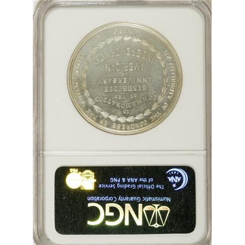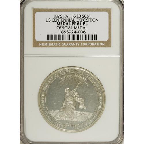<B>1876 U.S. Centennial Exposition So-Called Dollar, HK-20 in Silver, PR61 NGC.</B></I> A typical piece with faint hairlines, struck at the Mint exhibit on the expo grounds. Hibler and Kappen states that the silver versions were struck in limited quantities, without saying how many proofs were struck. We can only speculate and guess the number might be less than 100. The market value in 1963 was $85. Today's market value?<BR><BR><b>Shipping:</b> Coins & Currency (<a target="_blank" href="http://www.heritageauctions.com/common/shipping.php">view shipping information</a>)