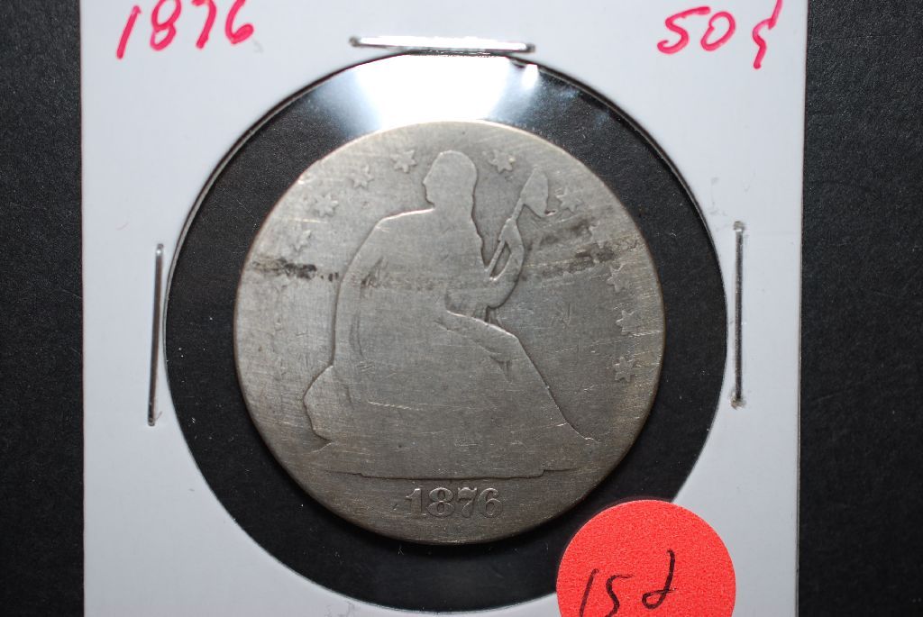 1876 US Seated Liberty Half Dollar; EST. $15-20