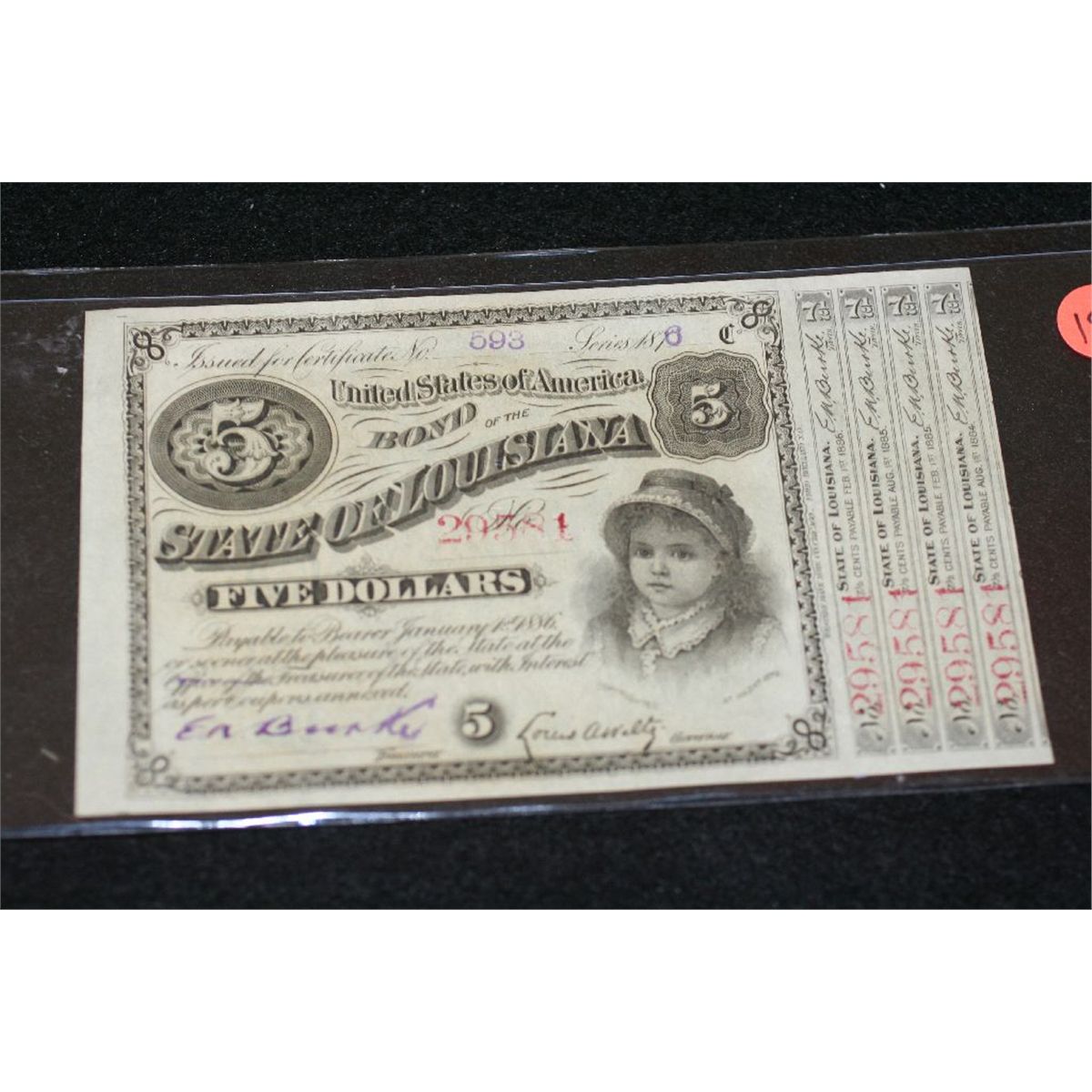 1876 USA Bond of the State of Louisiana $5 Bank Note
