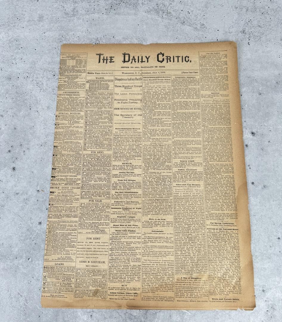 Newspaper date is July 6 1876. This is one of the earliest accounts of Custer's defeat at Little Big Horn.