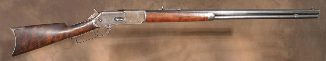 1876 Winchester Rifle. 27" barrel, 40" overall. Rare 50-95 calibre. Serial #1051 (missing last number). (est $1,500-2,500). For condition reports please visit: www.auctioninsantafe.com/cr2011.pdf