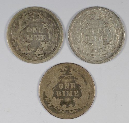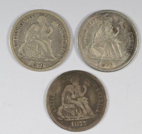 1876 XF, 1876-CC VF & 1877-CC G/VG SEATED DIMES