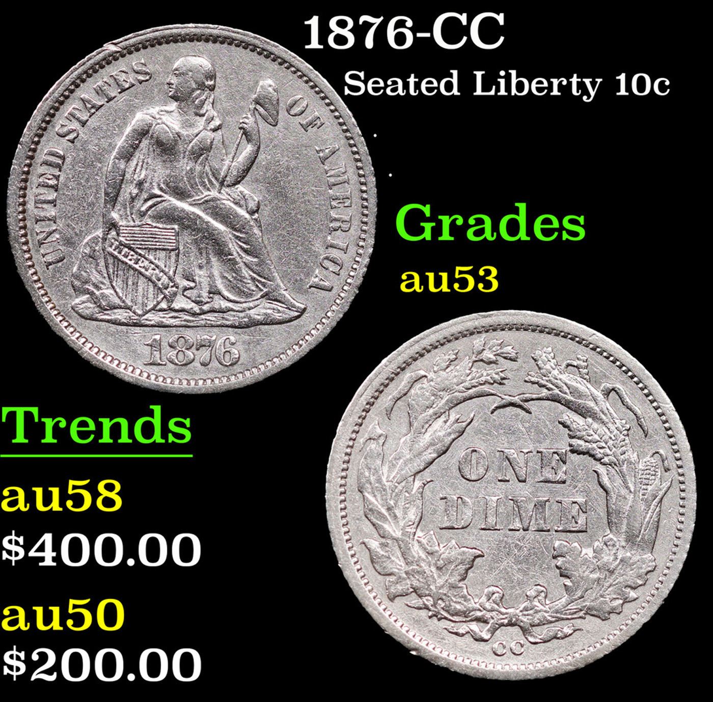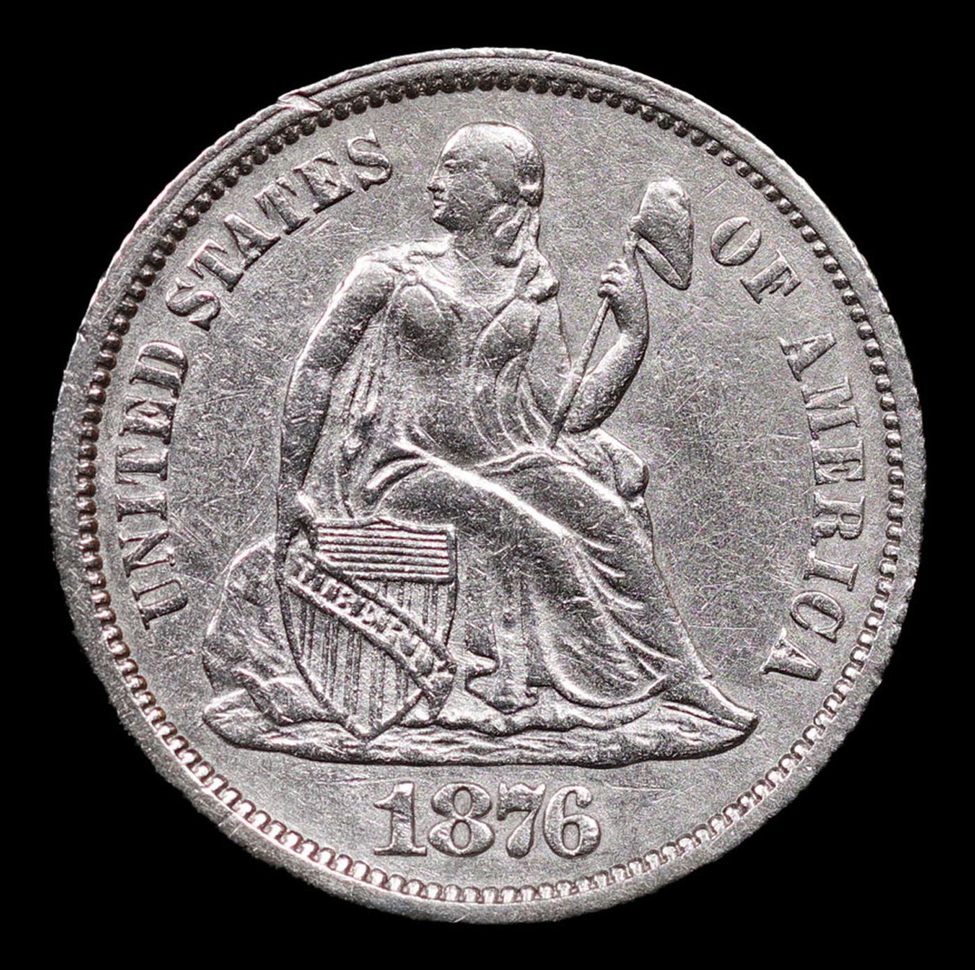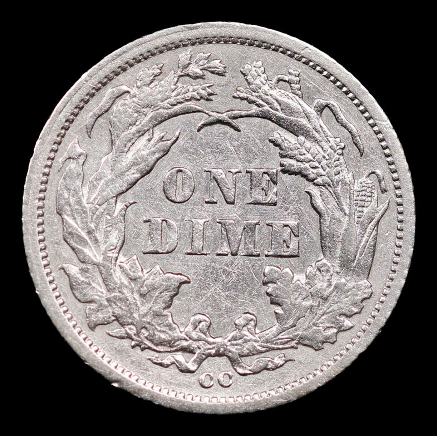 1876-cc Seated Liberty Dime 10c Grades Select AU.
