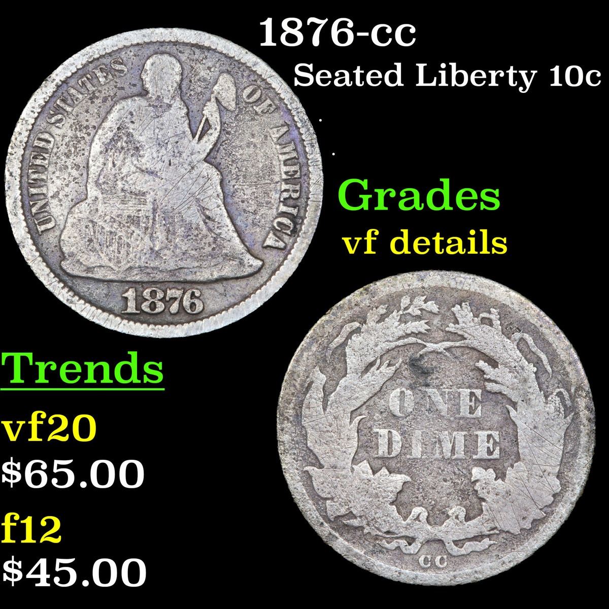 1876-cc . . Seated Liberty Dime 10c Grades vf details.