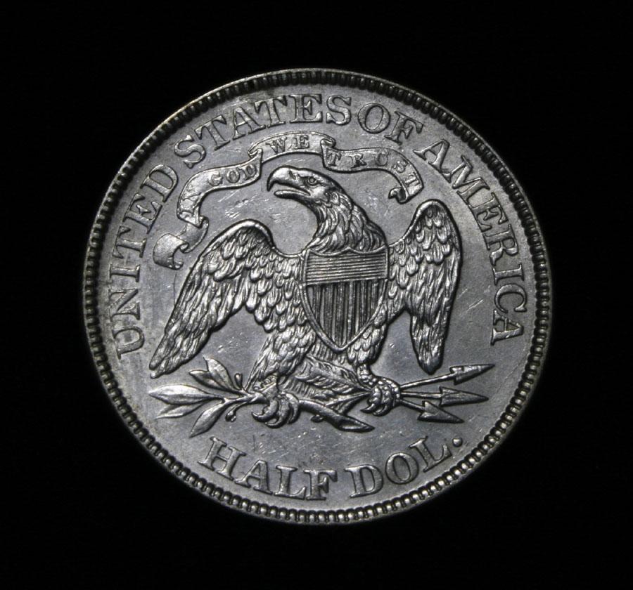 A nice example of this Seated Liberty Half Dollar. Coin World's Coin Values lists ms60 at $500 and ms62 at $620. The Wholesale Greysheet lists ms60 at $275 and ms63 at $630+. Estimated Value $400