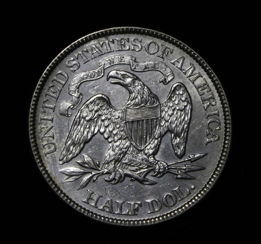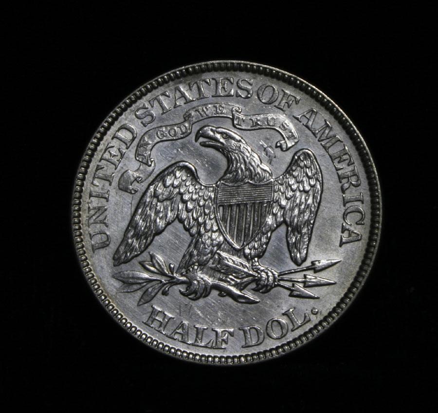A nice example of this Seated Liberty Half Dollar. Coin World's Coin Values lists ms60 at $500 and ms62 at $620. The Wholesale Greysheet lists ms60 at $275 and ms63 at $630+. Estimated Value $400