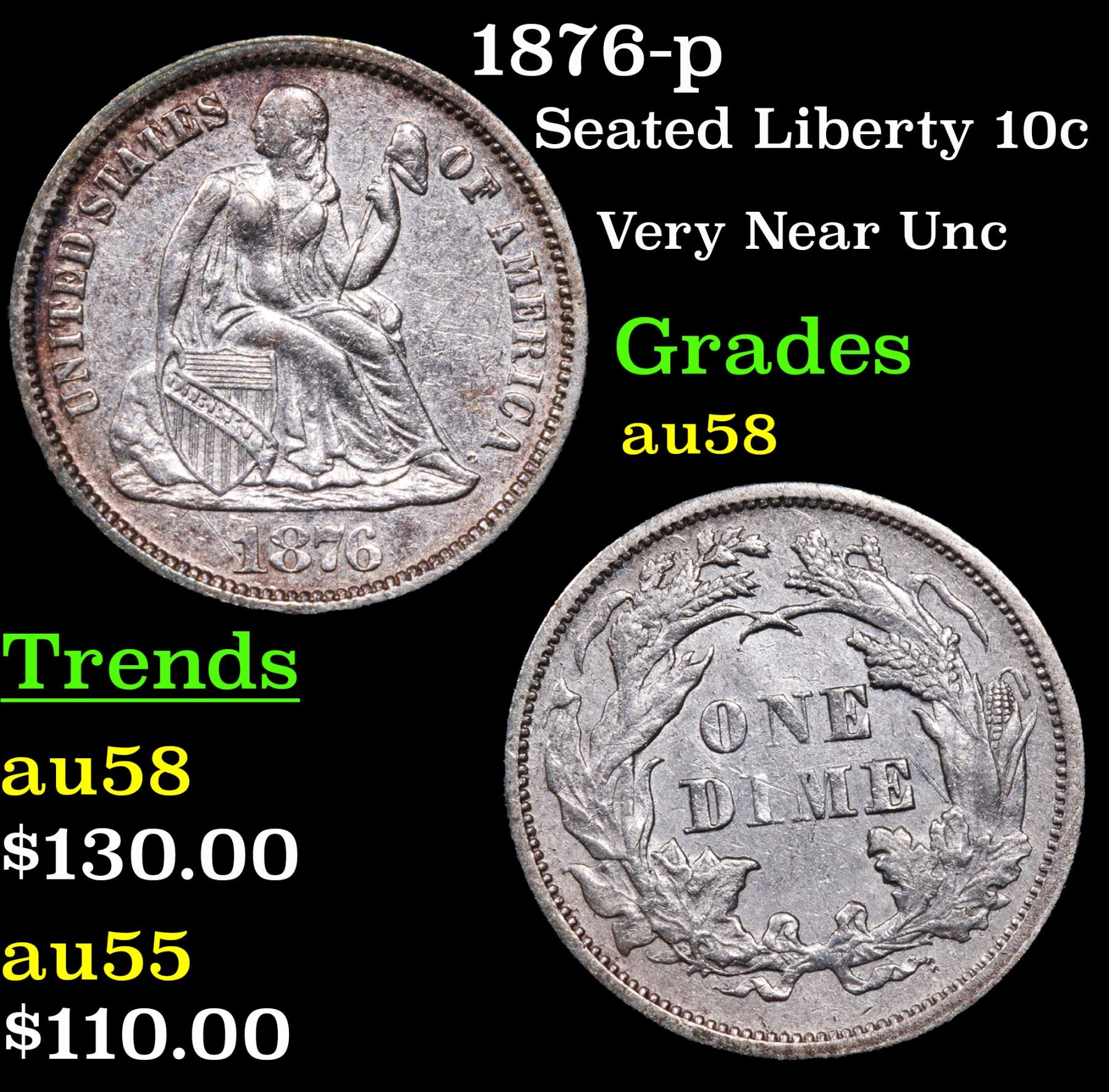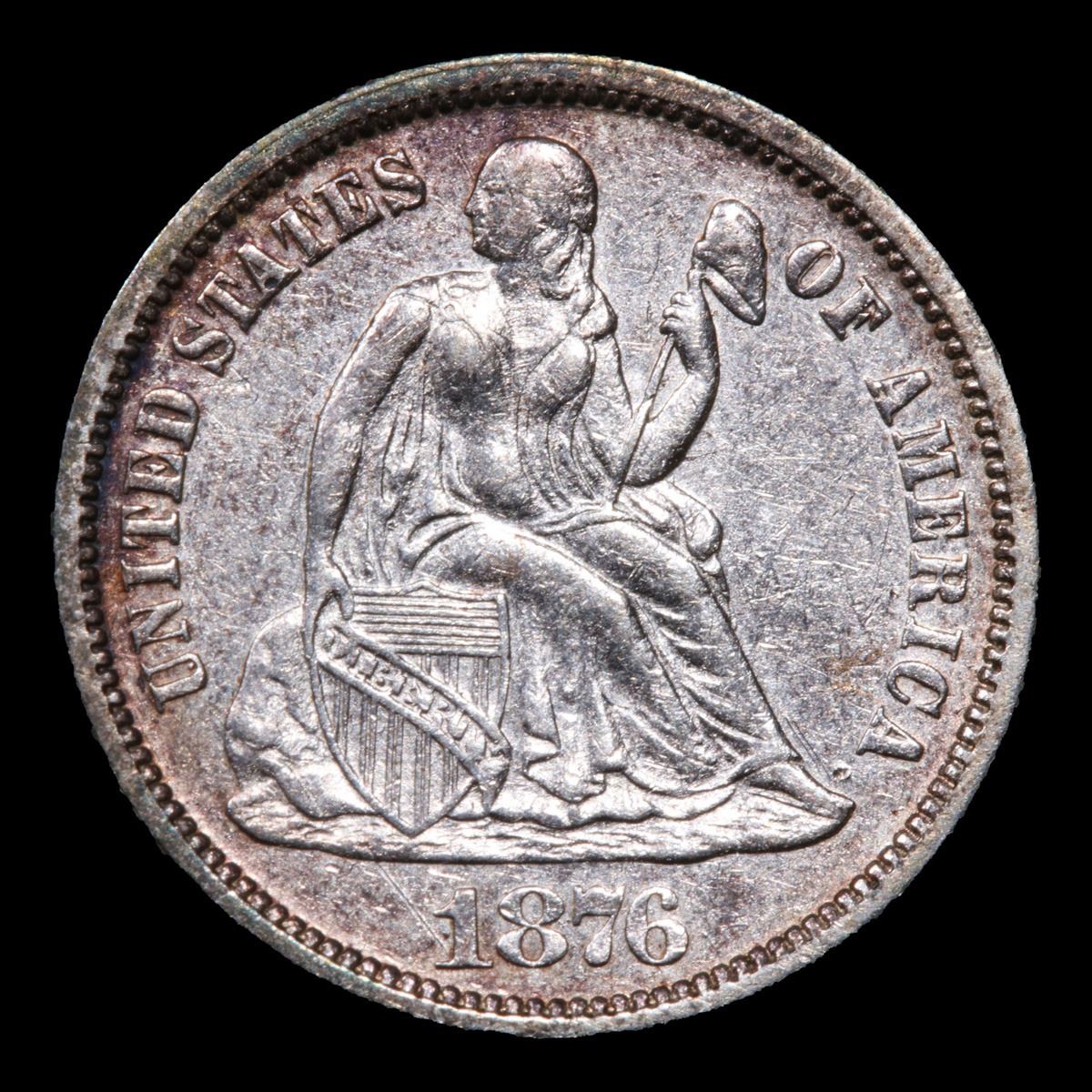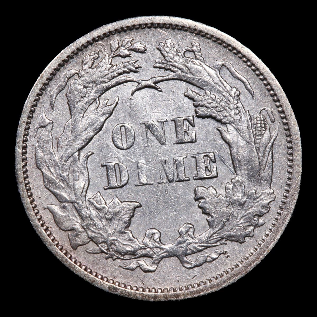 1876-p . Very Near Unc Seated Liberty Dime 10c Grades Choice AU/BU Slider.