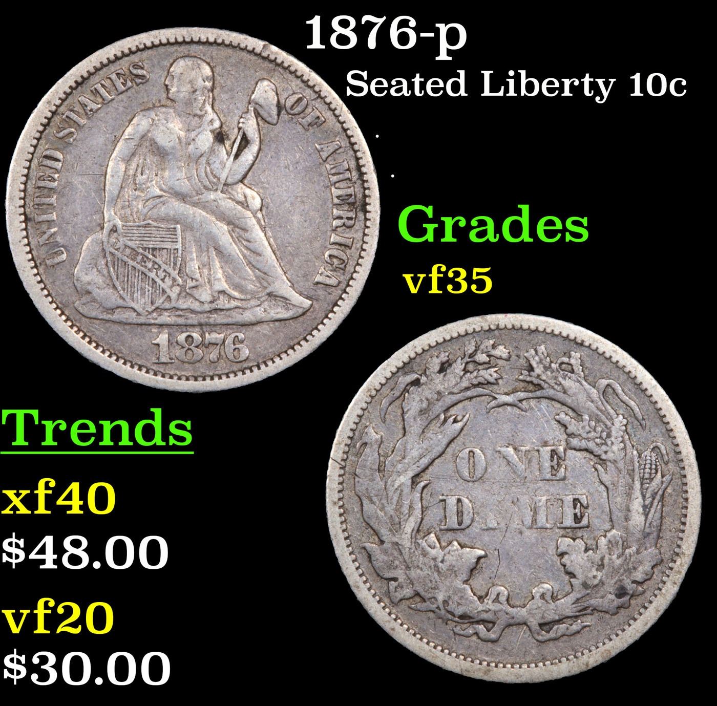 1876-p Seated Liberty Dime 10c Grades vf++.