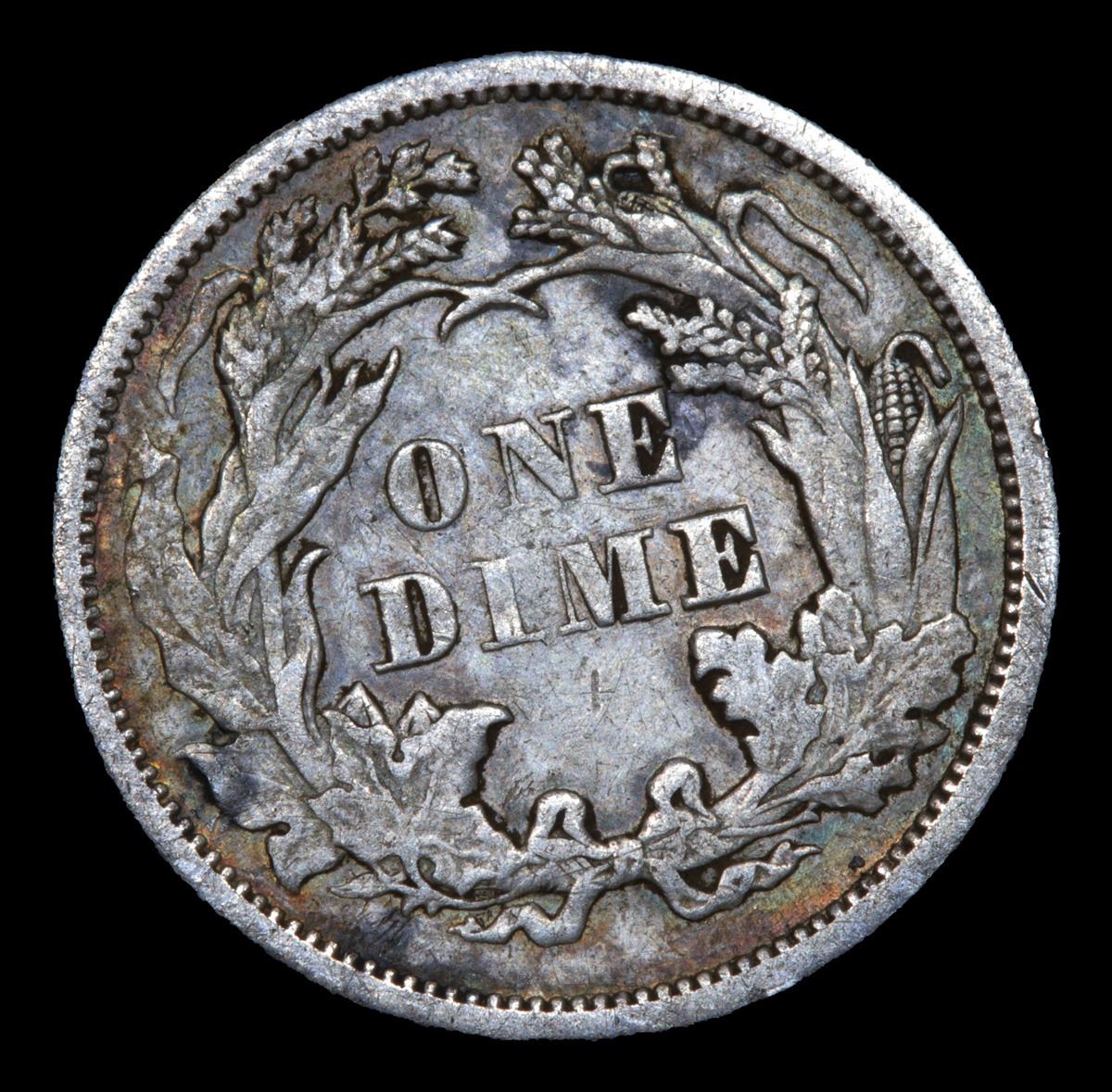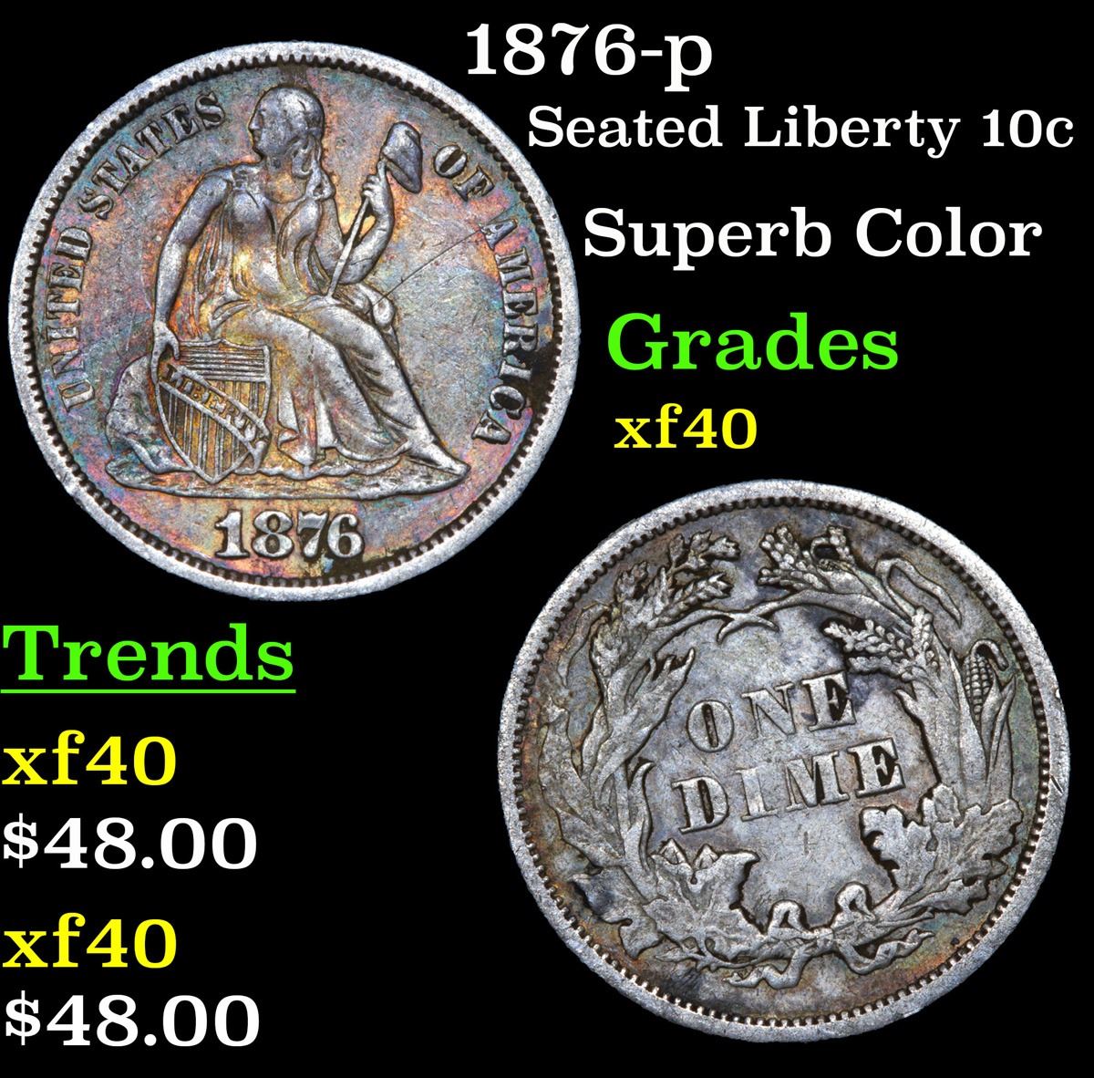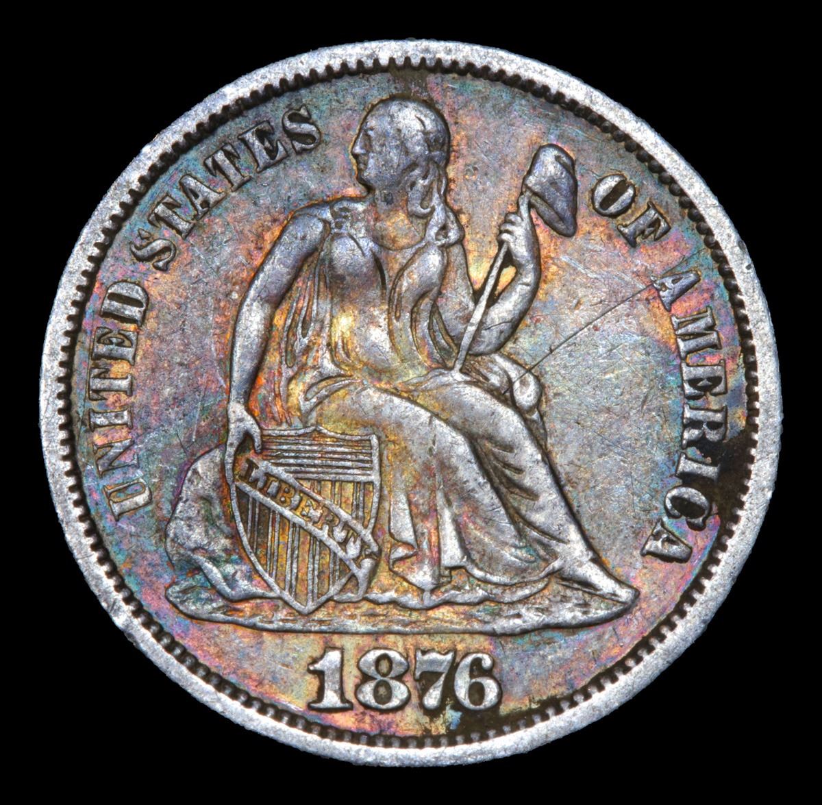 1876-p Superb Color . Seated Liberty Dime 10c Grades xf.