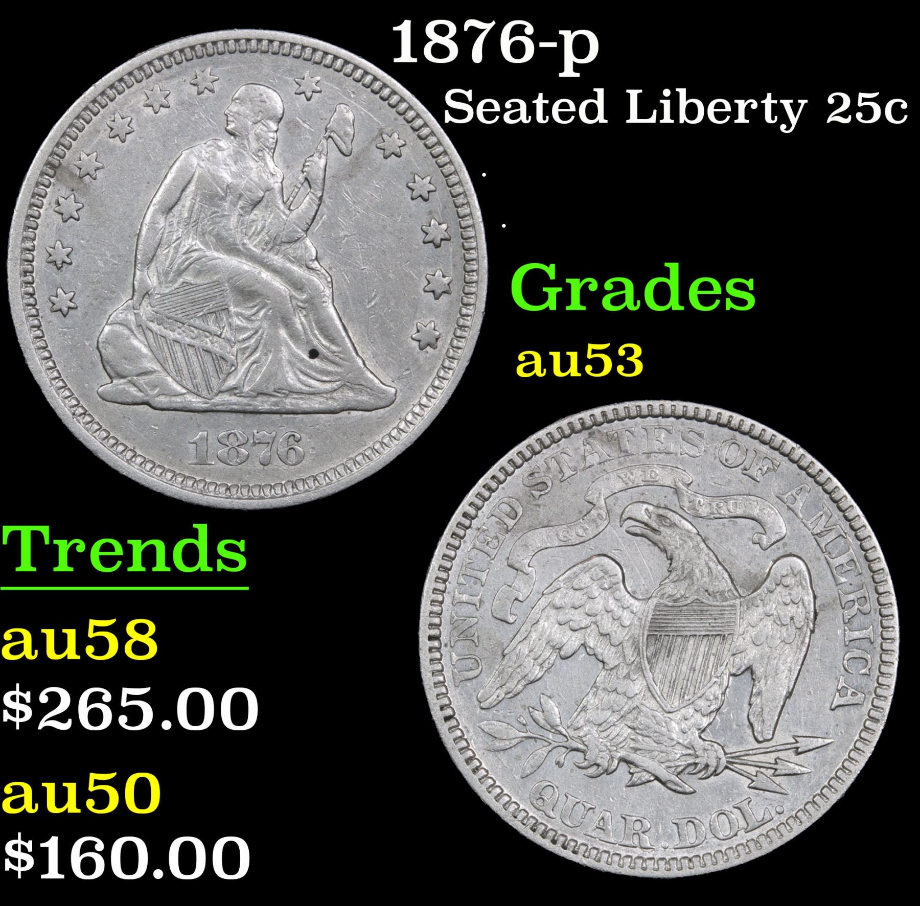 1876-p . . Seated Liberty Quarter 25c Grades Select AU.