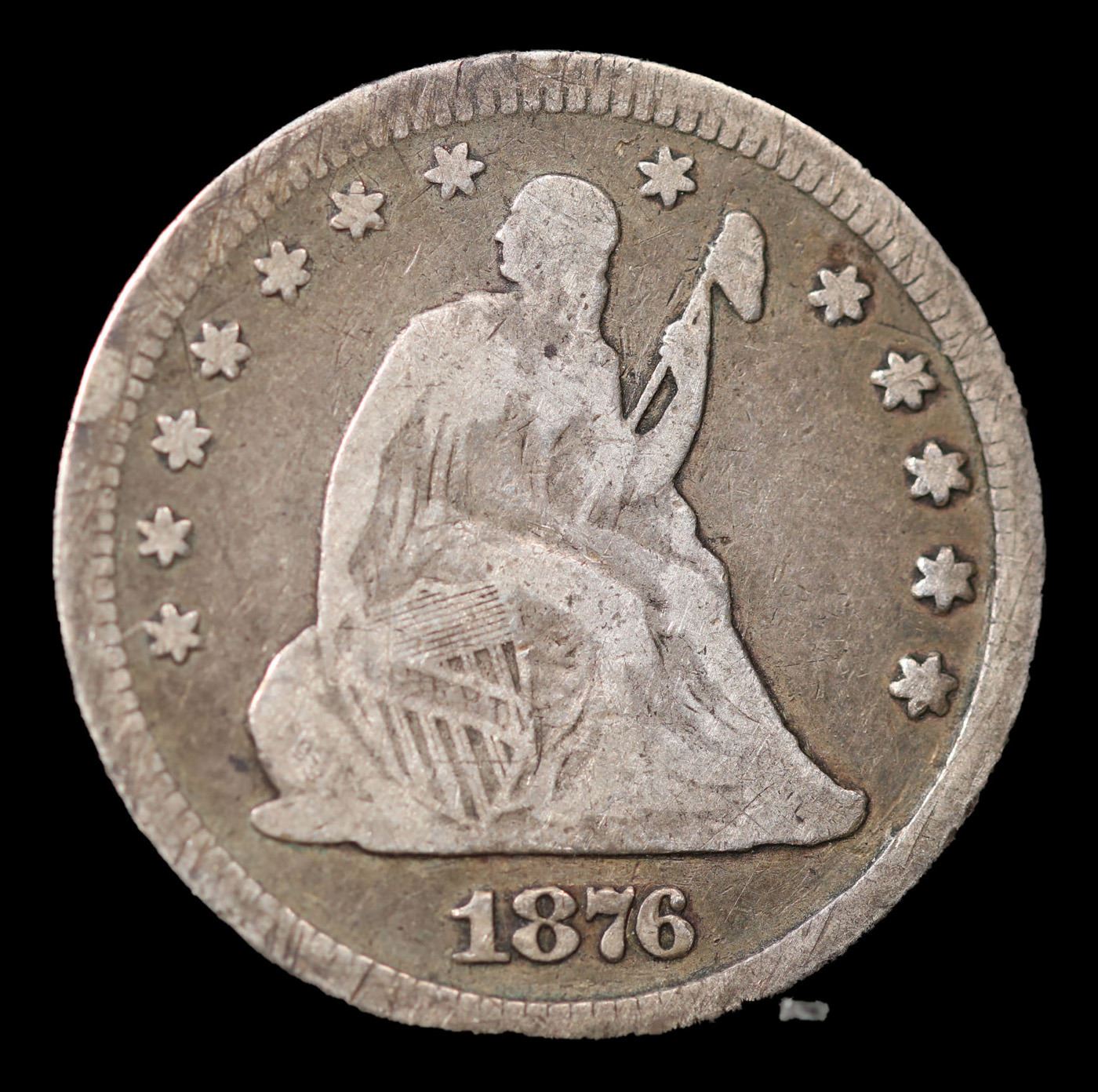 1876-p Seated Liberty Quarter 25c Grades f+.