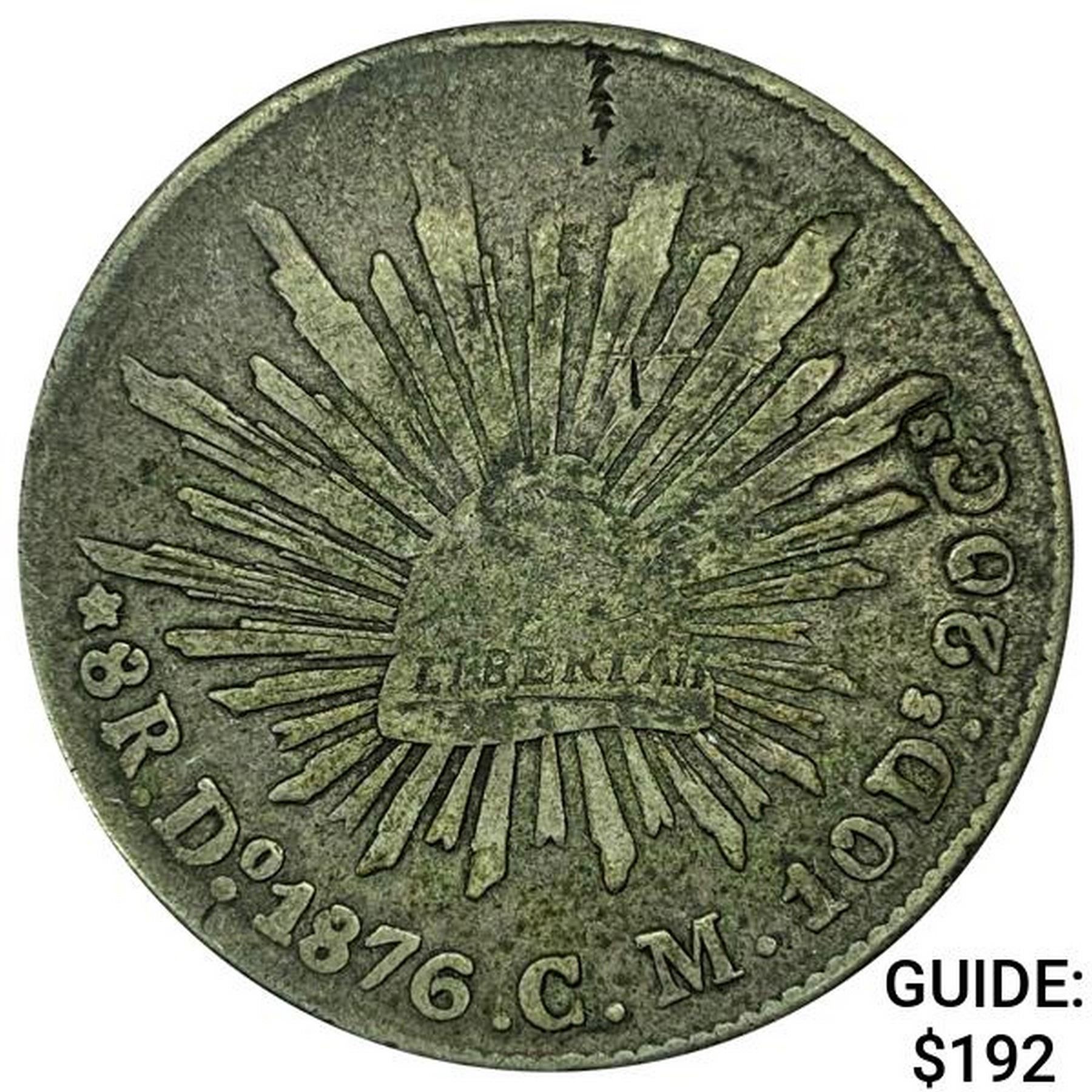 1876Do CM Mexico Silver 8 Reales Durango NEARLY UNCIRCULATED
