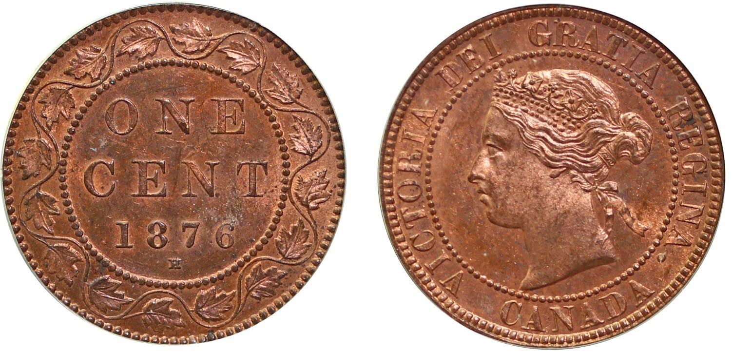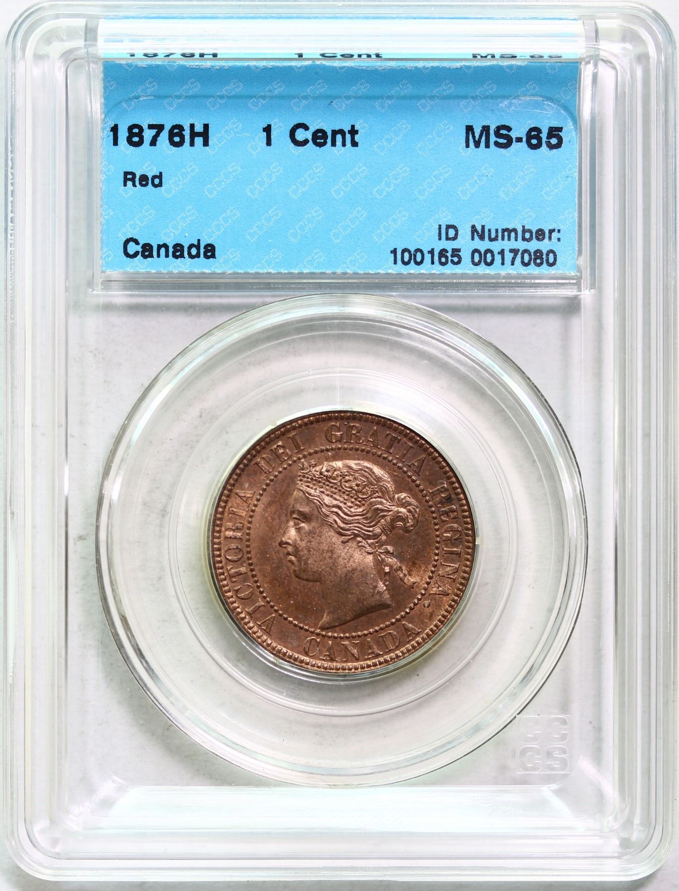 1876H 1¢ CCCS Gem Mint State-65 Red, Sharply struck with nice proof-Like fields