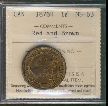 1876H 1¢ ICCS MS63RB.