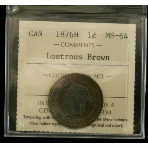 1876H 1¢ ICCS MS64 Lustrous Brown