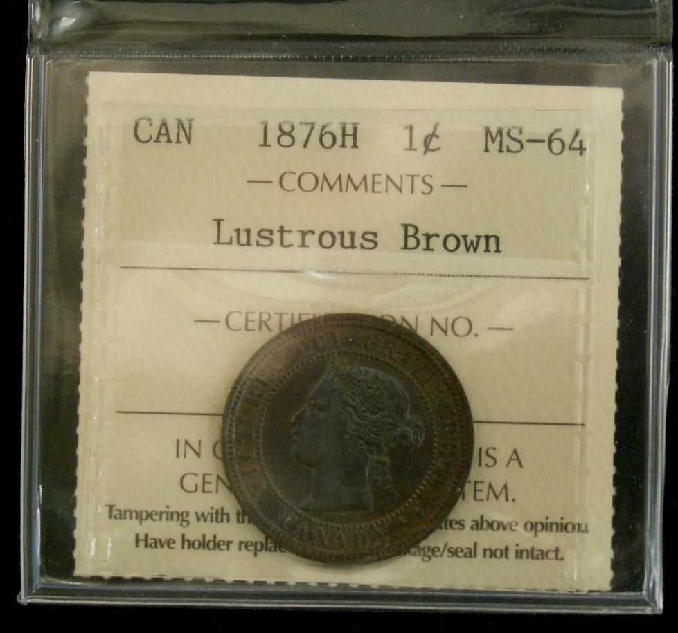 1876H 1¢ ICCS MS64 Lustrous Brown