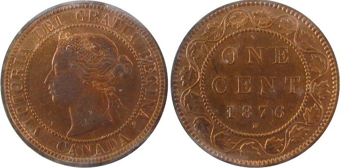 1876H 1¢ ICCS MS64RB. Burgundy red with mirror like fields.