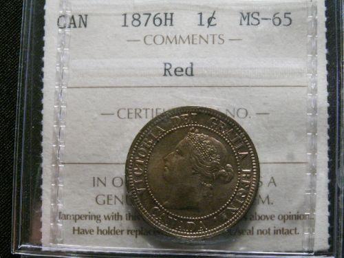 1876H 1¢ ICCS MS65 Red, Excellent strike with clean fields and great surfaces. Rare and very sought after.