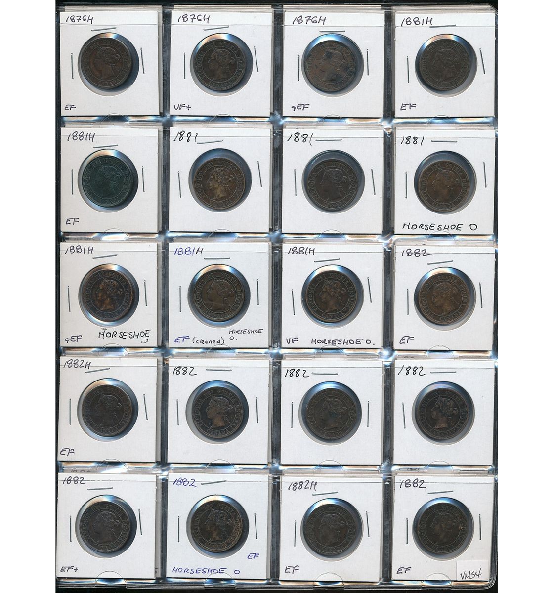 1876H 1¢ to 1901 Lot; includes 60 coins 1876H(3), 1881H(8), 1882H(10), 1884(2), 1886(2), 1887(3), 1