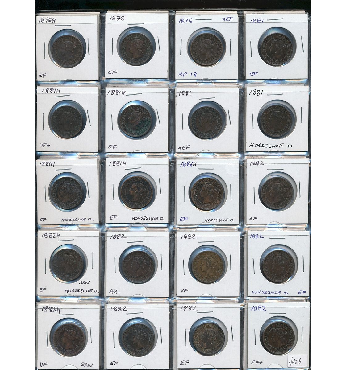 1876H 1¢ to 1901 Lot; includes 60 coins 1876H(3), 1881H(8), 1882H(10), 1884(3), 1886(2), 1887(3), 1