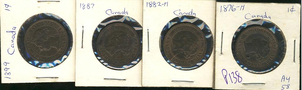 1876H, 1882H, 1887, 1899 1¢ all AU55