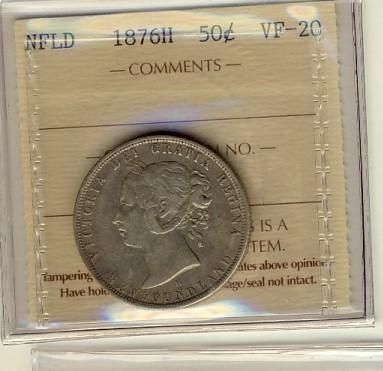 1876H Nfld 50¢ ICCS VF20. A decent example.