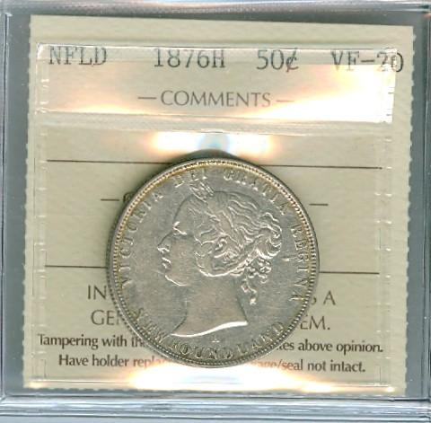 1876H Nfld 50¢ ICCS VF20. Brilliant with some underlying luster.