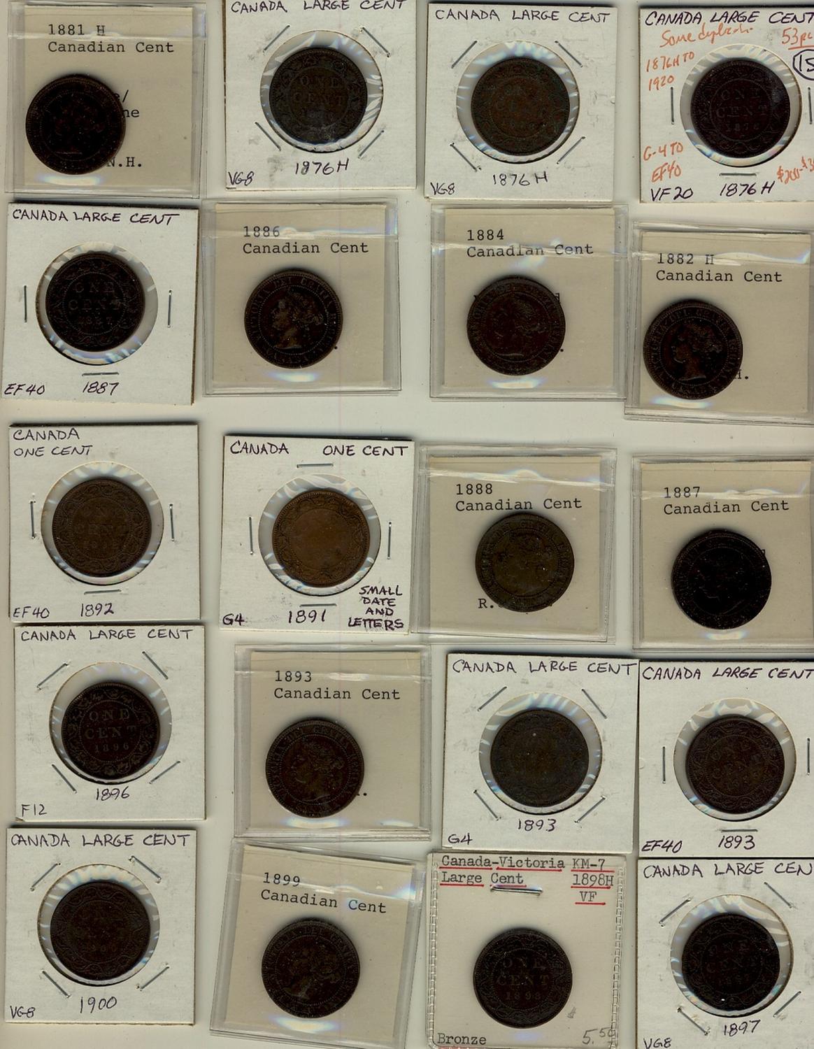 1876H to 1920, large group of 53 Large cents. G4 to EF40, a few duplicates.