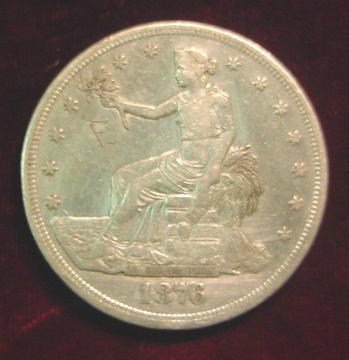 1876P US Trade Dollar. VF. Scr. In Obverse Field.