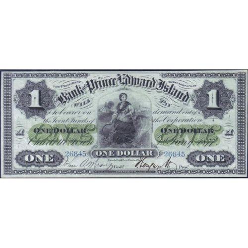 1877 One Dollar Bank of Prince Edward Island, CH 600-12-04 Serial Number 26845 A, PMG Gem Uncirculated 65 Exceptional Paper Quality