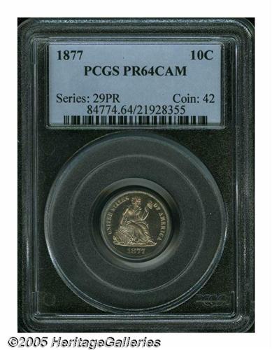 1877 10C PR64 Cameo PCGS. Completely untoned, the