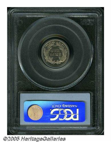 <B>1877<10C> PR64 Cameo PCGS.</B></I> Completely untoned, the fields show unfathomable depth of mirrored reflectivity and the devices are heavily frosted. Relatively few specimens with Cameo contrast survive from a brief proof mintage of 510 pieces.