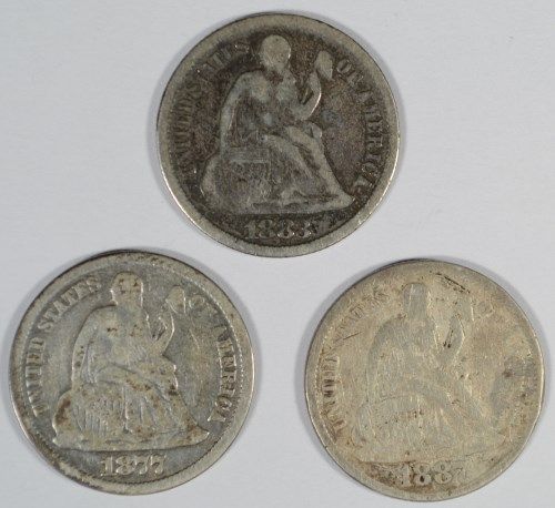 1877 & 1883 ARE VG, 1887 IS VG WITH DAMAGE, ESTIMATE, $40.00 TO $50.00 Silvertowne Auctions is proud to be a top ranked auction company on proxiblog.org