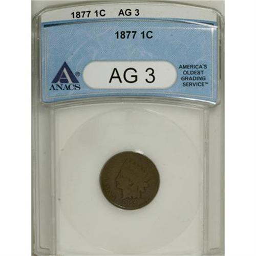 <B>1877 1C AG3 ANACS.</B></I> NGC Census: (98/1032). PCGS Population (105/1804). Mintage: 852,500. (#2127)<BR><BR><b>Shipping:</b> Coins & Currency (<a target="_blank" href="http://www.heritageauctions.com/common/shipping.php">view shipping information</a>)