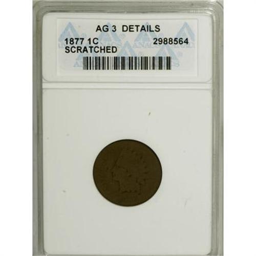 <B>1877 1C --Scratched--ANACS. AG3 Details.</B></I> NGC Census: (100/1040). PCGS Population (105/1804). Mintage: 852,500. (#2127)<BR><BR><B>Coin Engraver:</B> James B. Longacre<BR><BR><b>Shipping:</b> Coins & Currency (<a target="_blank" href="http://www.heritageauctions.com/common/shipping.php">view shipping information</a>\)