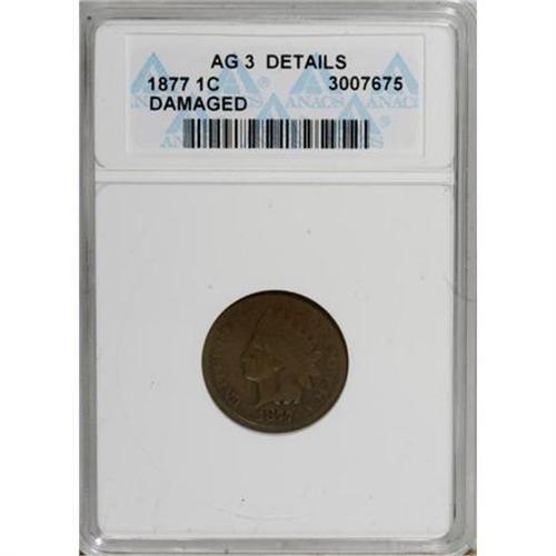 <B>1877 1C --Damaged--ANACS. AG3 Details.</B></I> NGC Census: (106/1056). PCGS Population (114/1873). Mintage: 852,500. (#2127)<BR><BR><B>Coin Engraver:</B> James B. Longacre<BR><BR><b>Shipping:</b> Coins & Currency (<a target="_blank" href="http://www.heritageauctions.com/common/shipping.php">view shipping information</a>)