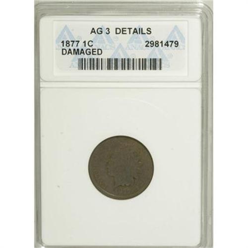 <B>1877 1C --Damaged--ANACS. AG3 Details.</B></I> NGC Census: (98/1014). PCGS Population (105/1804). Mintage: 852,500. (#2127)<BR><BR><b>Shipping:</b> Coins & Currency (<a target="_blank" href="http://www.heritageauctions.com/common/shipping.php">view shipping information</a>)