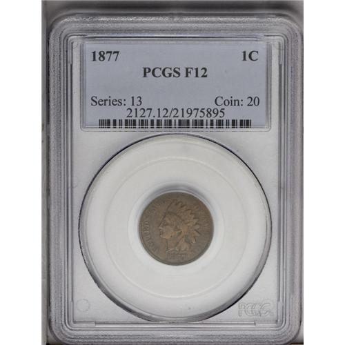 1877 1C Fine 12 PCGS. This key-date representative dis 1877[1C] Fine 12 PCGS.
