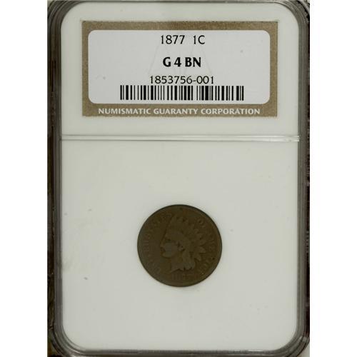 <B>1877 1C G4 NGC.</B></I> NGC Census: (160/1434). PCGS Population (199/1569). Mintage: 852,500. Numismedia Wsl. Price: $600. (#2127)<BR><BR><b>Shipping:</b> Coin/Currency (<a target="_blank" href="http://www.heritageauctions.com/common/shipping.php">view shipping information</a>)