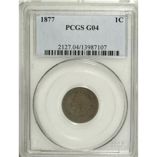 <B>1877 1C Good 4 PCGS.</B></I> This medium brown key date cent has full peripheral legends, and several shield lines are partially separated. Best of all, there is no corrosion or obtrusive marks.<BR><BR><B>Coin Engraver:</B> James B. Longacre<BR><BR><b>Shipping:</b> Coins & Currency (<a target="_blank" href="http://www.heritageauctions.com/common/shipping.php">view shipping information</a>)