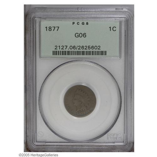 1877 1C Good 6 PCGS. Dark brown colored with heavy wea 1877[1C] Good 6 PCGS.