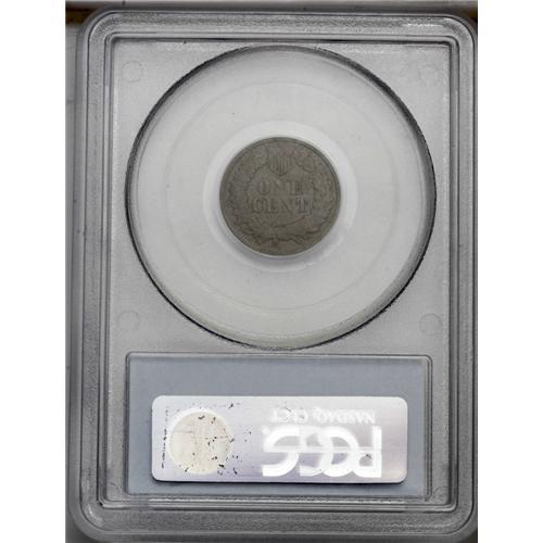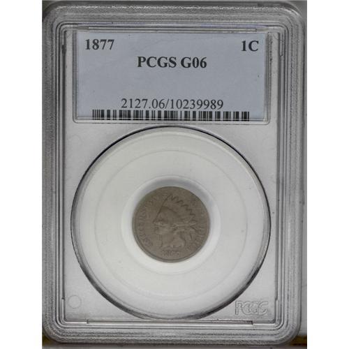 <B>1877<1C> Good 6 PCGS.</B></I> Smooth, even, wear overall, three lateral marks are reported on the obverse. A chocolate-brown example of this rare, key date Indian cent.