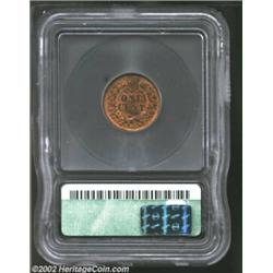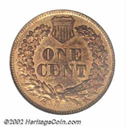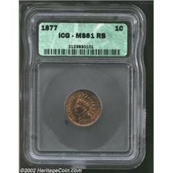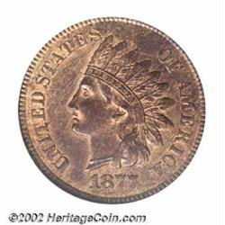 1877 1C MS61 Red and Brown ICG. Just a bit weakly struck on the feathertips of the headdress, the surfaces have variegated original red color interspersed with brown on each side. The 1877 is the key issue in the Indian Cent series with only 852,500 pieces struck. Important notice: We expect to be auctioning lots at the rate of 200-250 per hour. Sometimes eBay Premier live bid software cannot keep up with that pace, so we strongly recommend that you place a realistic proxy bid now as insurance to avoid disappointment. Also please note that all Heritage/CAA lots purchased through eBay Premier carry a 20% Buyer's Premium. Please make sure you read the Terms and Conditions.