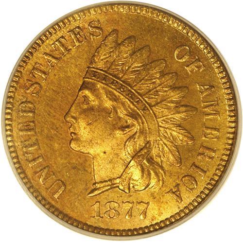 1877 1C MS64 Red and Brown PCGS. The bright, shimmerin