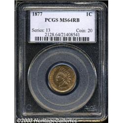 1877 1C MS64 Red and Brown PCGS. There is about a 50-50 mix of glossy-brown patina and orange-red luster on both sides of this high grade example. The overall strike is a little soft (a not uncommon feature for business strikes of this date), but the surfaces are as smooth as one should expect for the MS64 grade level. With an original mintage of just 852,500 pieces and a poor rate of survival, the 1877 is the undisputed key to the widely-collected Indian Cent series. Important notice: Heritage usually auctions material at the rate of 200-250 lots per hour. On some occasions eBay Live bid software or the Internet may not be able to keep up with the pace of the auction. We recommend placing a realistic absentee bid now as insurance to avoid disappointment. Occasionally the auctioneer may eliminate or reject an eBay Live bid, and the auctioneer may also reopen a lot after the close of the eBay live bidding (usually because we missed an audience bid), and may reject your bid even if it shows you as the winning bidder. By bidding via eBay Live, you agree that Heritage may award the lot to another bidder at its sole discretion under the circumstances described above or any other reasonable circumstances. Also please note that all Heritage lots purchased through eBay Live carry a 20% Buyer's Premium. Please make sure you read the Terms and Conditions before you bid.