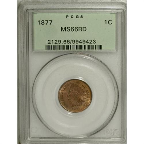<B>1877 1C MS66 Red PCGS.</B></I> The many Mint Acts passed in U.S. history have had long-running and often unexpected repercussions for American coinage. The Mint Act of 1871, meant to give the Mint the legal ability to redeem and melt coins not issued in precious metal and reissue cents in their place, something that facility had done for several years before. All pieces redeemed in this fashion were melted until 1874, when the Mint began to pay older bronze cents back into circulation.<BR> While not so dramatic a bill as some other Mint Acts in U.S. history, the consequences of that piece of legislation were far-reaching. The Panic of 1873, brought on by a series of declines in the stock market and triggered by the failing of a single company, had a domino effect that created a four-year depression, which lasted until 1877. In the meantime, the glut of cents that had inspired the Mint Act of 1871 was easing, and in 1874, the Mint began to reissue bronze cents rather than melting and reminting them. As reissuing increased, production of new cents decreased, and the slowing economy only accelerated this trend.<BR> The low-mintage 1877 cent issue brought the trend to its ultimate conclusion. America was still in the midst of the depression, and silver coins were only beginning to circulate for the first time since the beginning of the Civil War. Of the almost 10 million cents turned into the Mint in 1877, over 9.8 million were paid back out, and the small supplemental mintage of cents for that year, stated at 852,500 pieces, was the smallest to that point in the small cent era. A number of prominent numismatic scholars, including noted expert Rick Snow, believe that even the stated mintage is too high. All known genuine 1877 cents are tied to a single reverse of a type last used five years before. At a time when a typical die's working life was in the low six figures, it seems highly improbable that this lone reverse die could last for so many pieces, especially since no known examples show significant die cracks or wear on that side. If the 1877 cent issue was struck from just one reverse die and that die had an average lifespan, the actual production for 1877 would be smaller than that of the 1909-S Indian, which is generally acknowledged as the lowest-mintage issue of the series.<BR> In his Introduction to Snow's <I>A Guide Book of Flying Eagle and Indian Head Cents </B></I>(2006), Q. David Bowers offered sage sentences about just how elusive Uncirculated Indian cents are in the context of their broader mintages: "The survival of Mint State coins is a matter of chance--a piece put away in a cast-iron bank in the 1880s, or left in a box of keepsakes, or perhaps picked out of circulation by a coin collector. In proportion to the original mintage figures, only a tiny fraction of 1% of the various issues have survived in Mint State." It is easy to lose sight of such truths when looking at pages of carefully preserved pieces in an auction catalog, but facts remain facts, and at the highest grade levels, often only a handful of pieces exist, hardly enough to satisfy the demand from dozens of would-be buyers.<BR> Such conditions are only magnified when the issue under consideration is a key. The 1877 Indian cent, with its small starting population and its low rate of survival, has resulted in a tiny pool of high-grade representatives. While NGC has graded no pieces above MS65 with full Red color, PCGS has certified six examples as MS66 Red, including the present coin (6/07). The surfaces of this shining cent have vibrant copper-orange color that shows only the slightest hint of turning at the margins. The strike is sharp, which is particularly evident at the wingtips and the N in ONE, which has a solid outline despite this issue's diagnostic weakness at the lower right corner. A handful of pinpoint carbon flecks on the reverse are only appreciable under magnification. In sum, an unbeatable representative of the most challenging Indian cent issue and a grand opportunity for the dedicated collector of the series.<BR><I>From The Santa Fe Collection.</B></I><BR><BR><B>Coin Engraver:</B> James B. Longacre<BR><BR><b>Shipping:</b> Coins & Currency (<a target="_blank" href="http://www.heritageauctions.com/common/shipping.php">view shipping information</a>\)