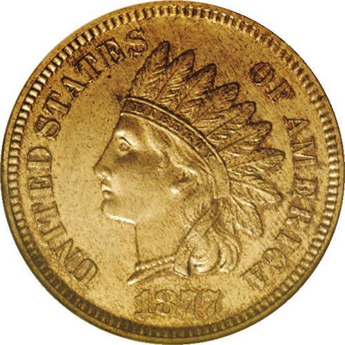 <B>1877<1C> PR62 Red and Brown ANACS.</B></I> A bright and highly reflective example of this key issue in the Indian cent series. While only 900 proofs were minted, the importance of this date comes from the scarcity of business strikes. The surfaces have a streaky overlay of reddish-brown patina, but this does little to subdue the mirror-like fields.