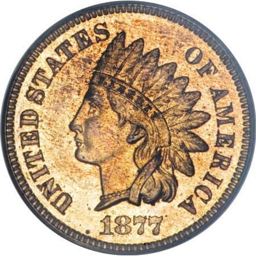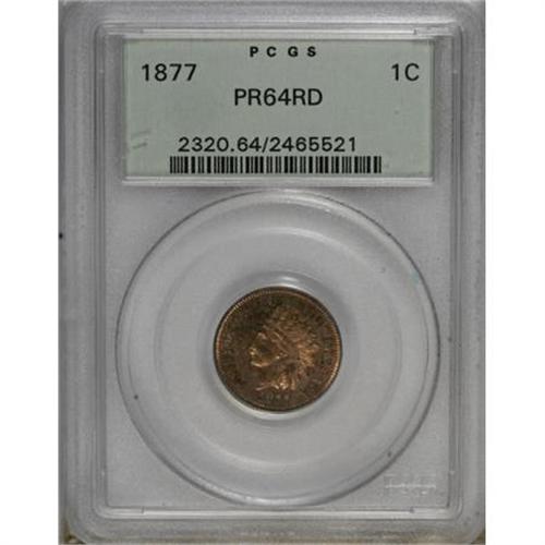 <B>1877 1C PR64 Red PCGS.</B></I> It is curious that such a popular issue as the 1877 cent does not have an exact mintage figure known for proofs. Nevertheless, whatever the mintage figure is, it is insufficient for the demand placed on this key date. This piece is struck from the more frequently seen reverse die with the bulged right pendant on the T in CENT. The surfaces retain most of the original, bright orange-red color with faint streakiness. A few tiny carbon spots are scattered over each side and account for the less-than-Gem grade. <BR><BR><B>Coin Engraver:</B> James B. Longacre<BR><BR><b>Shipping:</b> Coins & Currency (<a target="_blank" href="http://www.heritageauctions.com/common/shipping.php">view shipping information</a>)