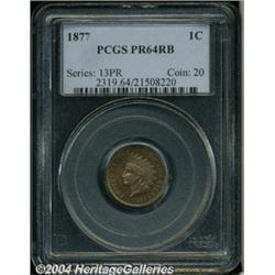 <B>1877<1C> PR64 Red and Brown PCGS.</B></I> Toned a rich reddish-tan color with iridescent highlights. A Choice Proof example of this key date and one that has legitimate claims to a Gem classification. Free of spots and other impairments. <BR><BR><B>Important notice:</B> Heritage usually auctions material at the rate of 200-250 lots per hour. On some occasions eBay Live bid software or the Internet may not be able to keep up with the pace of the auction. We recommend placing a realistic absentee bid now as insurance to avoid disappointment. Occasionally the auctioneer may eliminate or reject an eBay Live bid, and the auctioneer may also reopen a lot after the close of the eBay live bidding (usually because we missed an audience bid), and may reject your bid even if it shows you as the winning bidder. By bidding via eBay Live, you agree that Heritage may award the lot to another bidder at its sole discretion under the circumstances described above or any other reasonable circumstances. Since eBay bids are not shown to us until we open the lot on the floor, we treat those bids just like floor bids. In most cases the floor responds before the eBay bid is presented to us, due to Internet lag time, so for consistency we have made it a policy that floor bids are always considered first over tie eBay live bids. Also please note that all Heritage lots purchased through eBay Live carry a 20% Buyer's Premium. Please make sure you read the Terms and Conditions before you bid. </span></font></tr></table></td></tr></table>